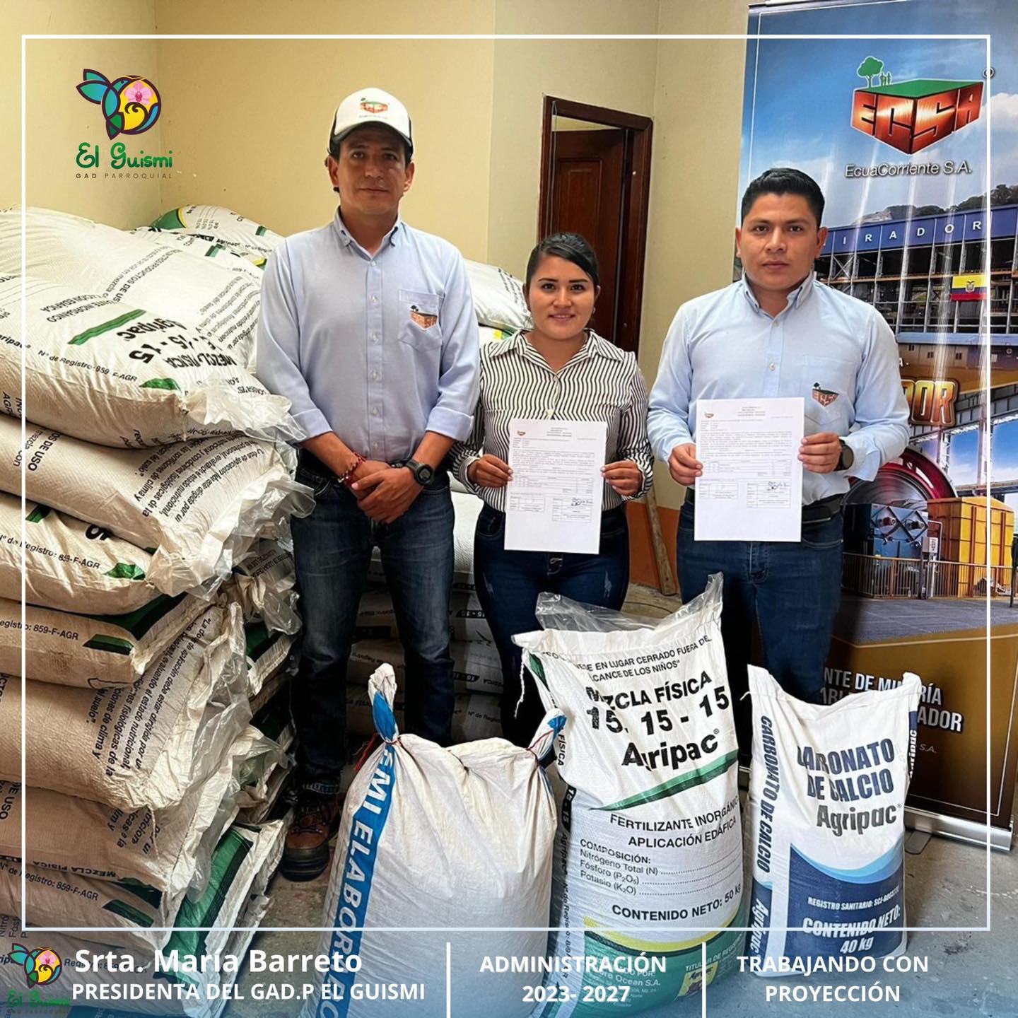 El Gobierno Autónomo Descentralizado de la parroquia El Guismi, gestionó a la empresa privada EcuaCorriente S.A, una contribución de fertilizantes y abono orgánico para nuestros agricultores