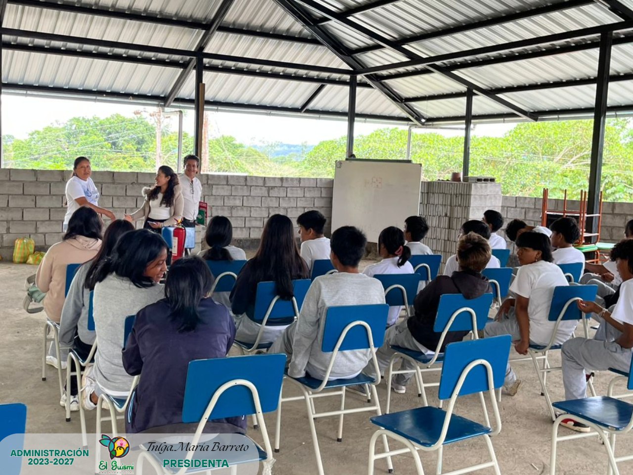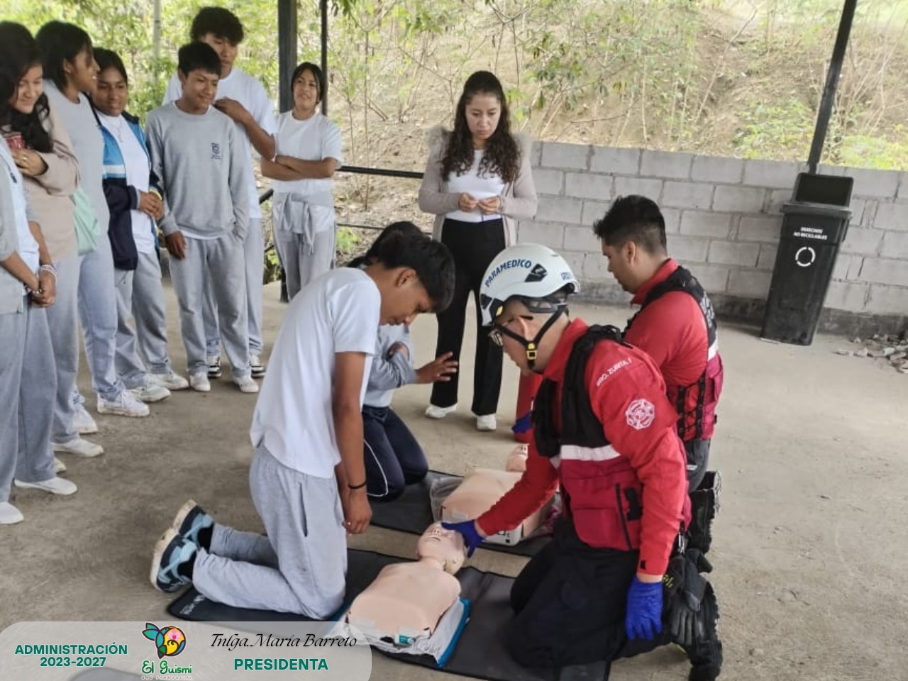 En el barrio Chuchumbletza, con el grupo de estudiantes, docente y rector de la Unidad Educativa “Hualcopo Duchicela” participaron en un taller integral de primeros auxilios y seguridad contra incendios, gracias a la gestión del GAD Parroquial y la vocal Sra. Sonia Zhizzpon, Comisión de Participación Ciudadana, Desarrollo Social y Conectividad